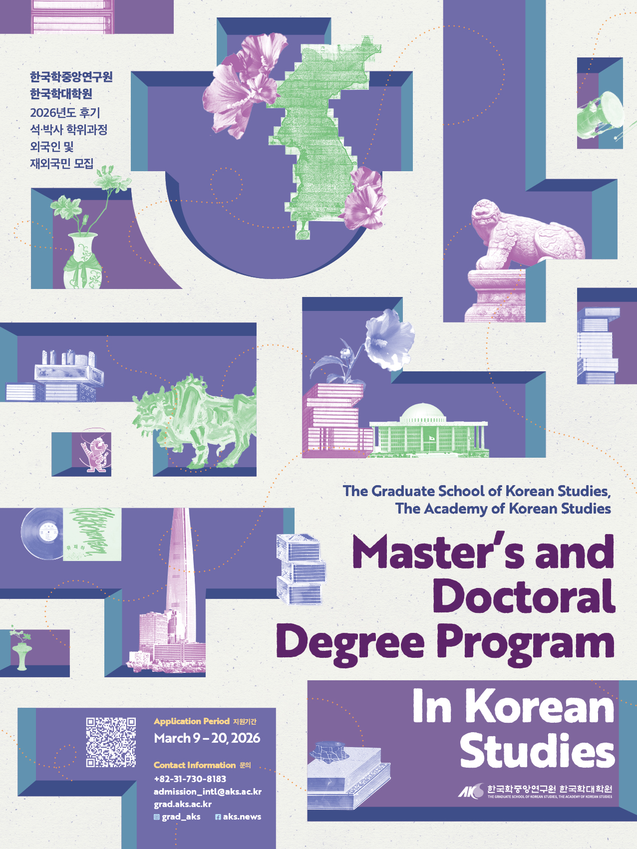 El programa de Posgrado en Estudios Coreanos de la Academia de Estudios Coreanos (AKS, por sus siglas en inglés), institución pública afiliada al Ministerio de Educación de Corea, abre la convocatoria para la admisión especial de nuevos estudiantes para los años 2026 y 2027, de acuerdo con la siguiente información.